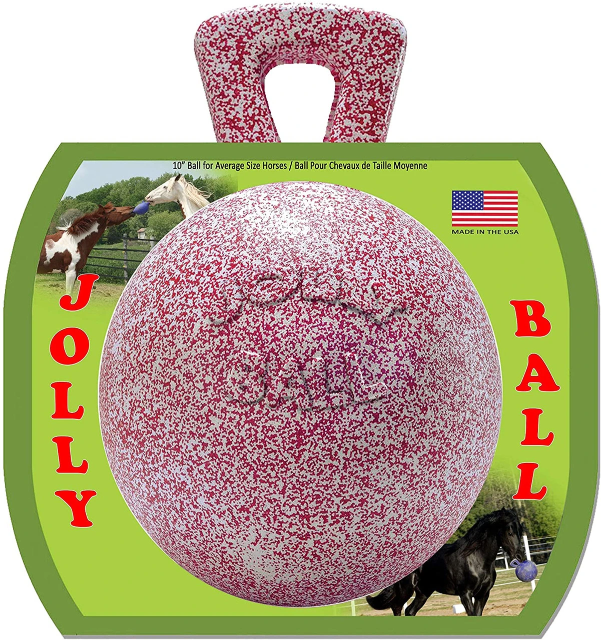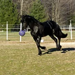 Help alleviate stall boredom with Jolly Ball Horse Toy. Crafted using durable materials, it’s made to last. And unlike other ball toys, this one features an air-free design, maintaining its shape even if punctured from chewing or from playing. This versatile toy’s handle has a large hole for hanging in stalls or throwing in pasture. It’s made in the USA with safe materials and has multiple scents that horses love. Help to break your equine friend’s boredom with Horsemen’s Pride Jolly Ball Horse Toy.