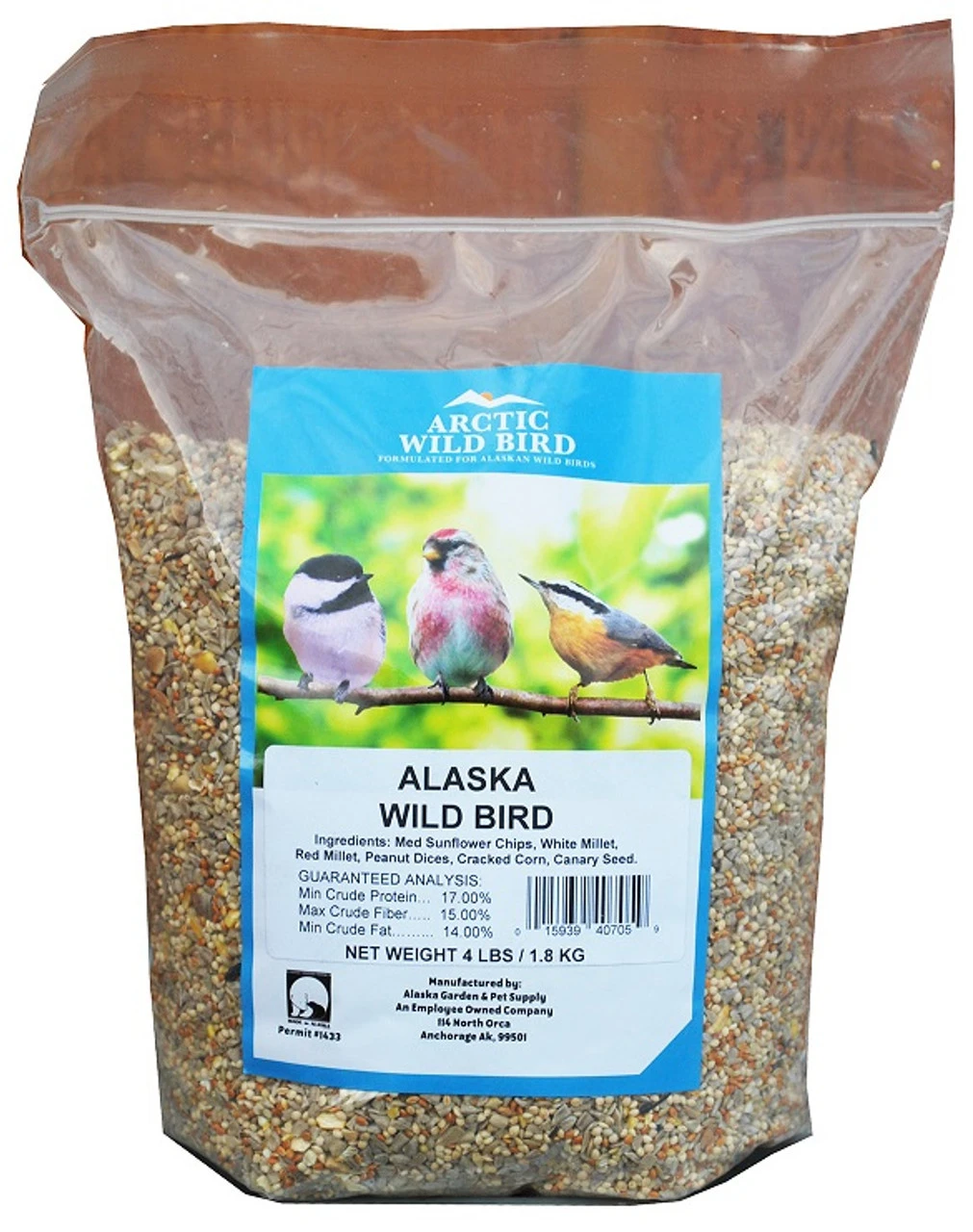 Medium Sunflower Chips, White Millet, Red Millet, Peanut Dices, Fine Cracked Corn, Canary Seed.