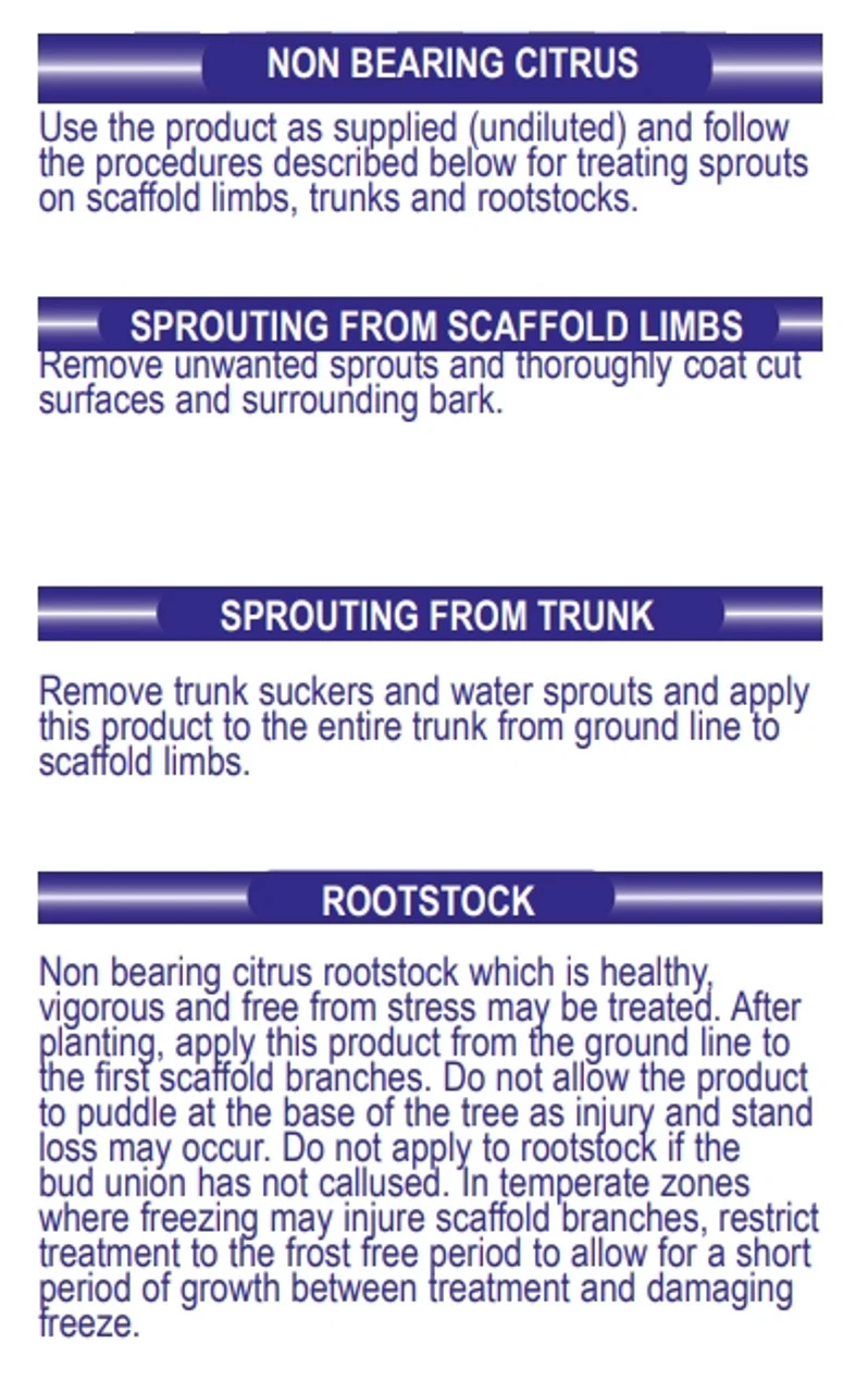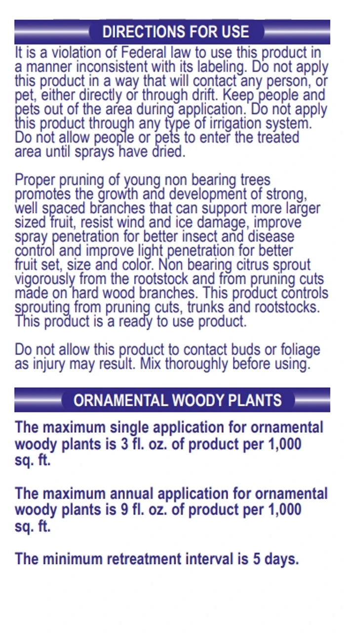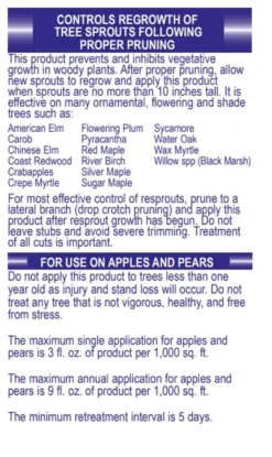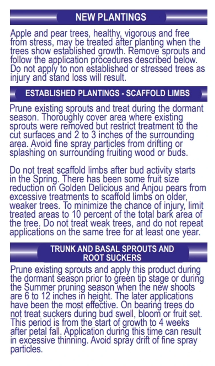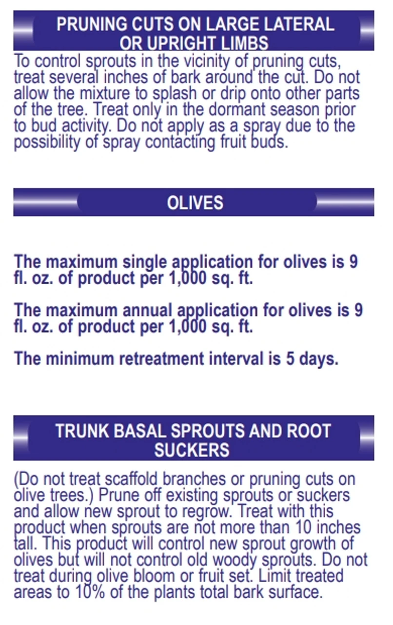 - Controls sprouts and sucker growth on apples, olives, pears, non-bearing citrus and ornamental woody plants
