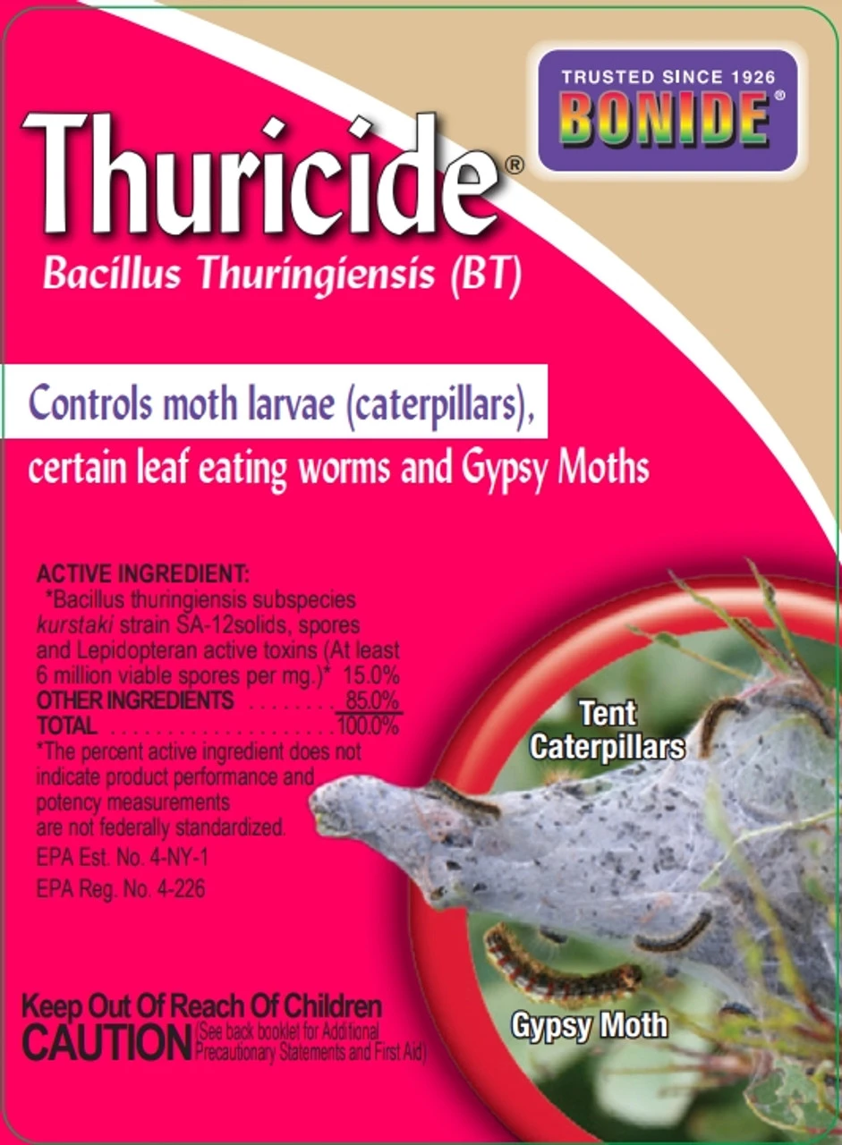 - CONTAINS BACILLUS THURINGIENSIS – The active ingredient of this product is Bacillus thuringiensis, also known as Bt. Bt is a natural occurring, soil-borne bacteria that has been used since the 1950s for natural insect control.