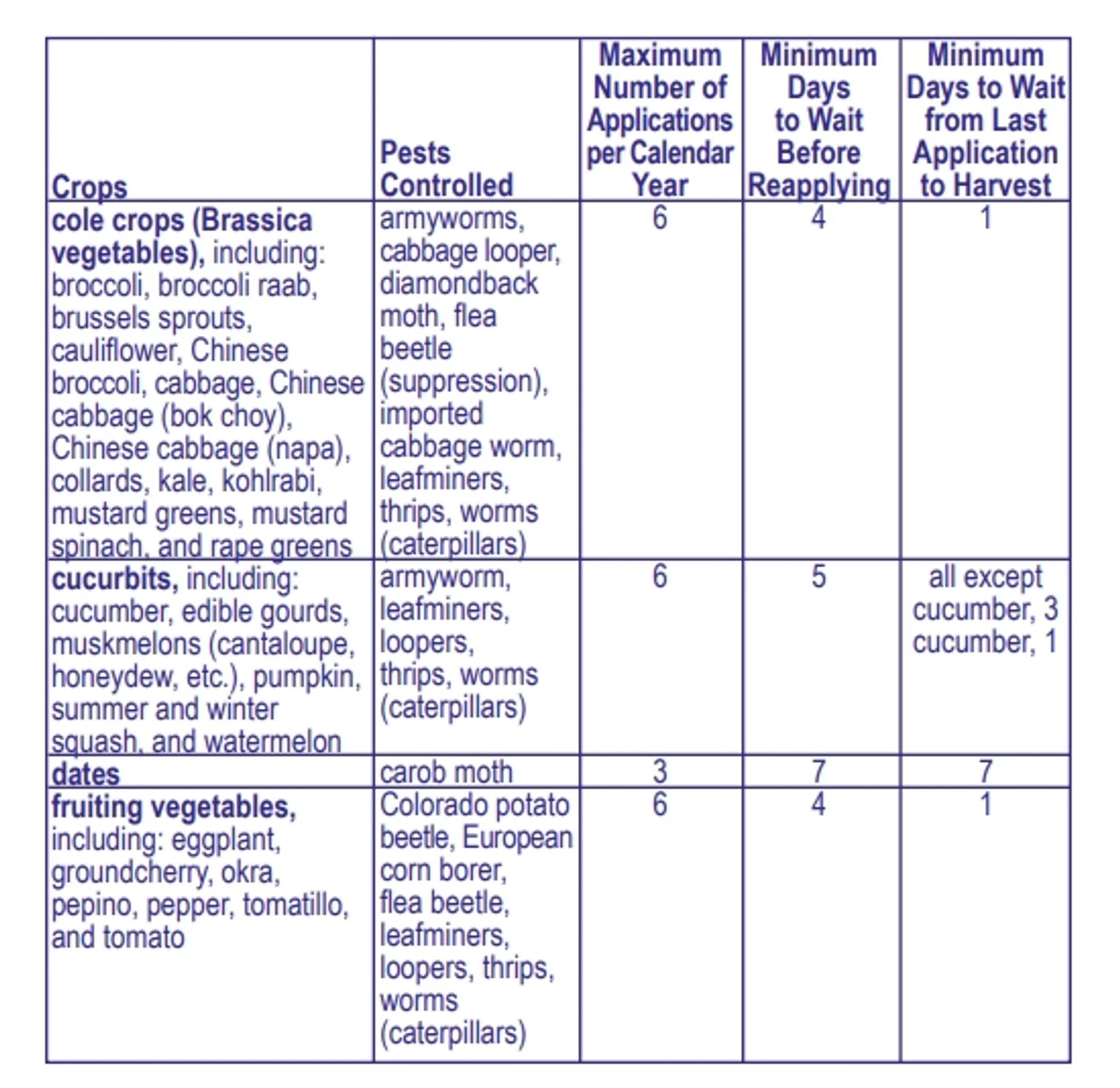 - VARIETY OF FOLIAGE – Protects a wide variety of plants including fruiting vegetables, cucurbits, cole crops, leafy vegetables, tuberous vegetables, stone fruits, bushberries, and pome fruits.