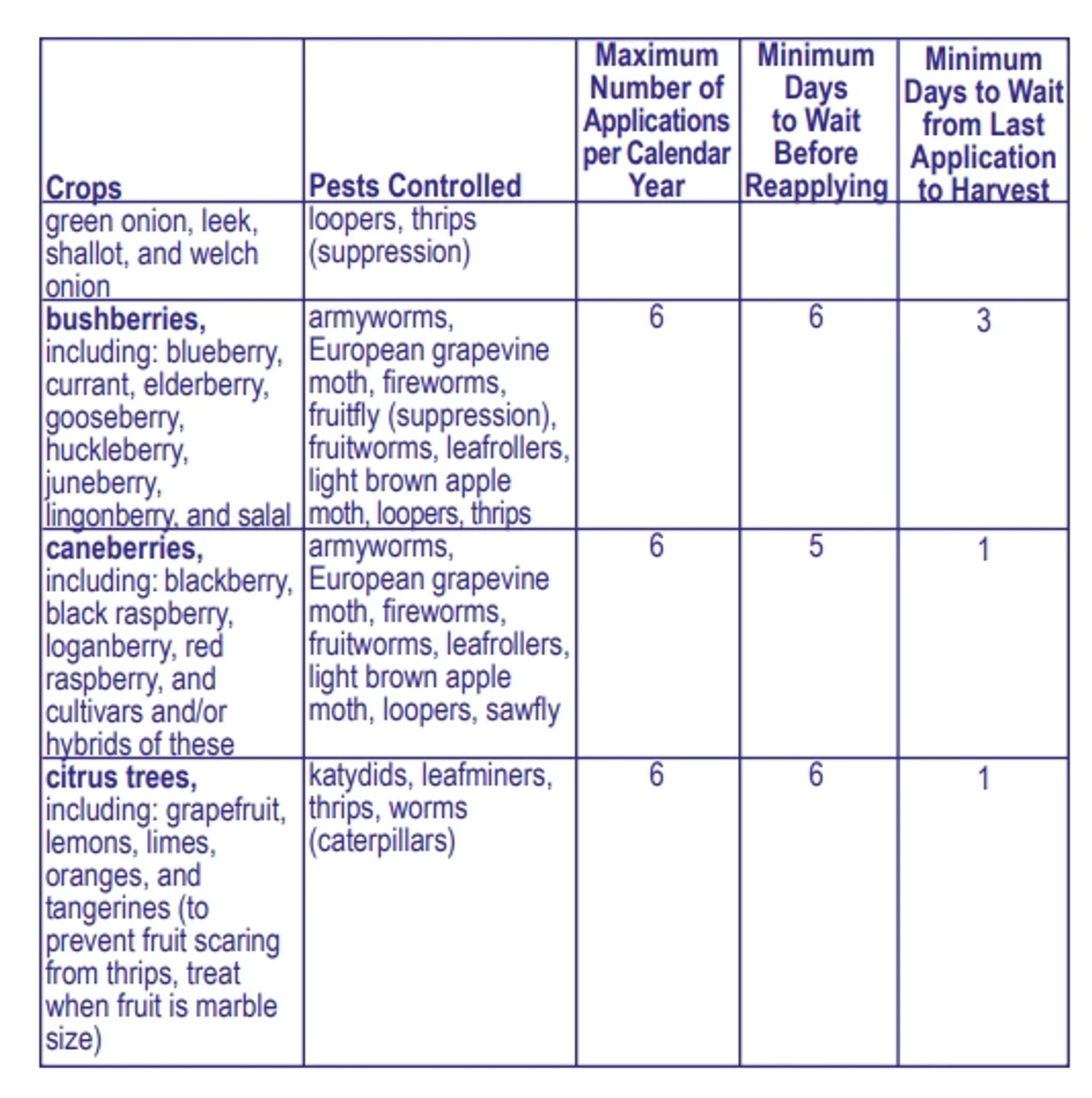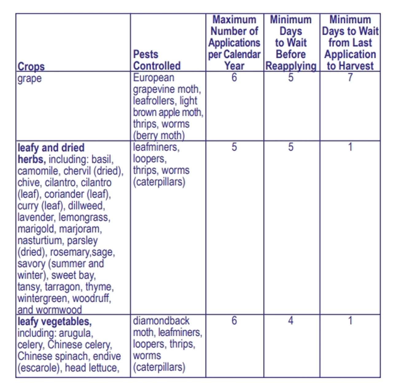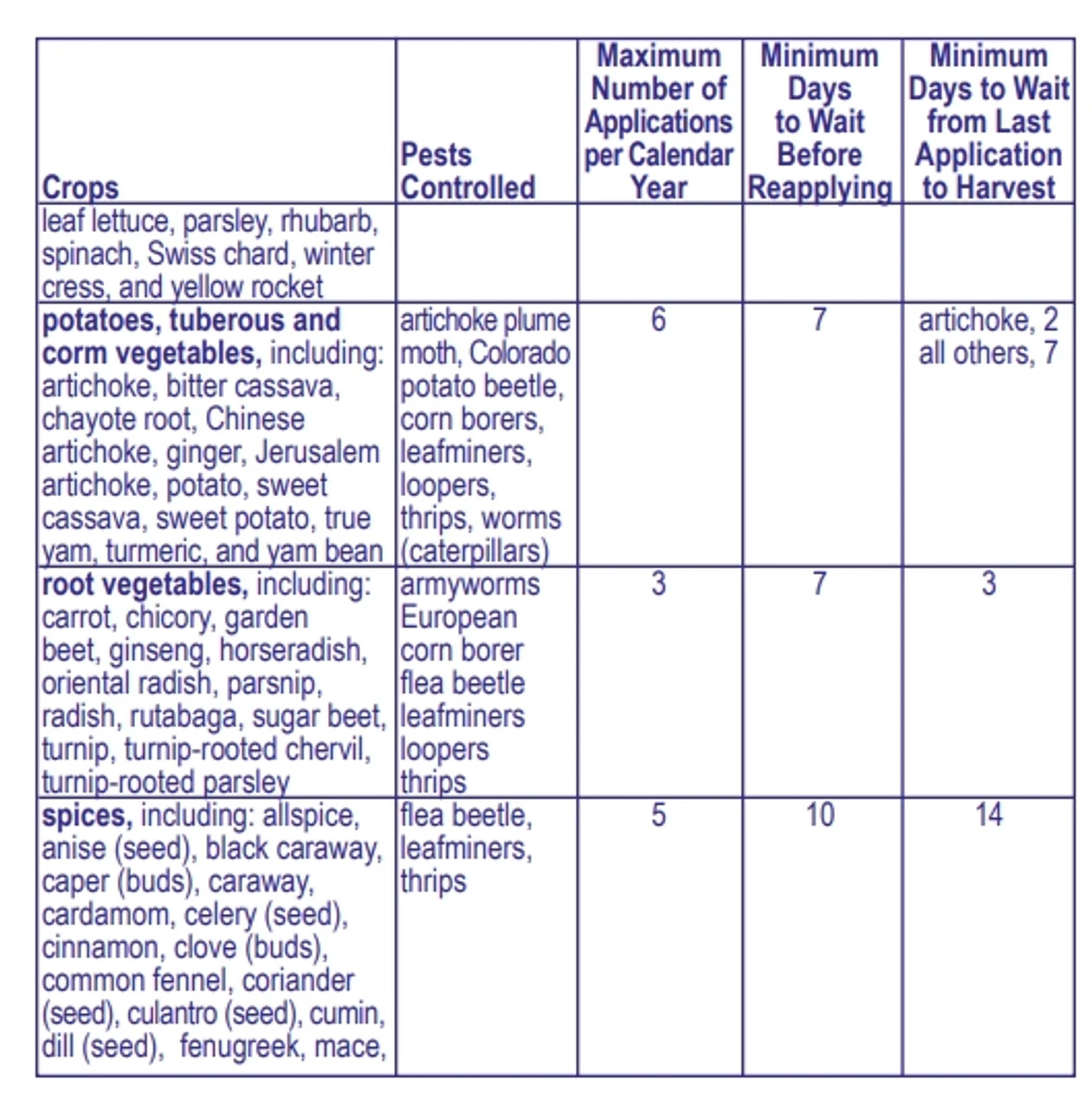 - Safe for use up to day of harvest for listed crops