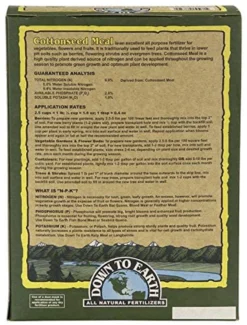 - Down to Earth Cottonseed Meal is a five pound box of all natural fertilizer with 6-21-1 formula