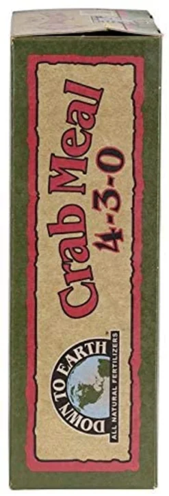 - Down to Earth Crab Meal is a five pound box of all natural fertilizer with 4-3-0 formula and is listed by the Organic Materials Review Institute (OMRI) for use in organic productioneal is a five pound box of all natural fertilizer with 4-3-0 formula and is listed by the Organic Materials Review Institute (OMRI) for use in organic production