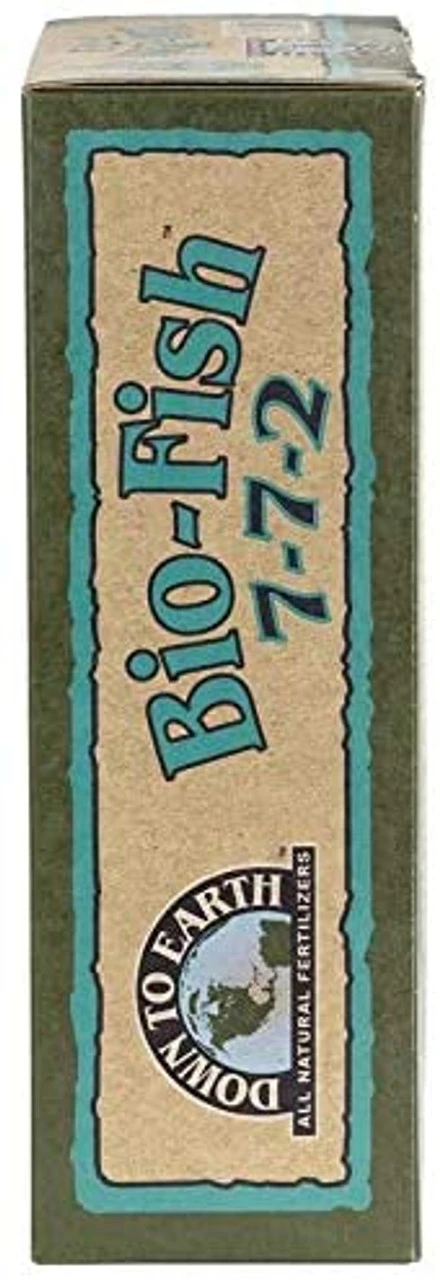 - Down to Earth Bio Fish is a five pound box of all natural fertilizer with 7-7-2 formula and is listed by the Organic Materials Review Institute (OMRI) for use in organic production