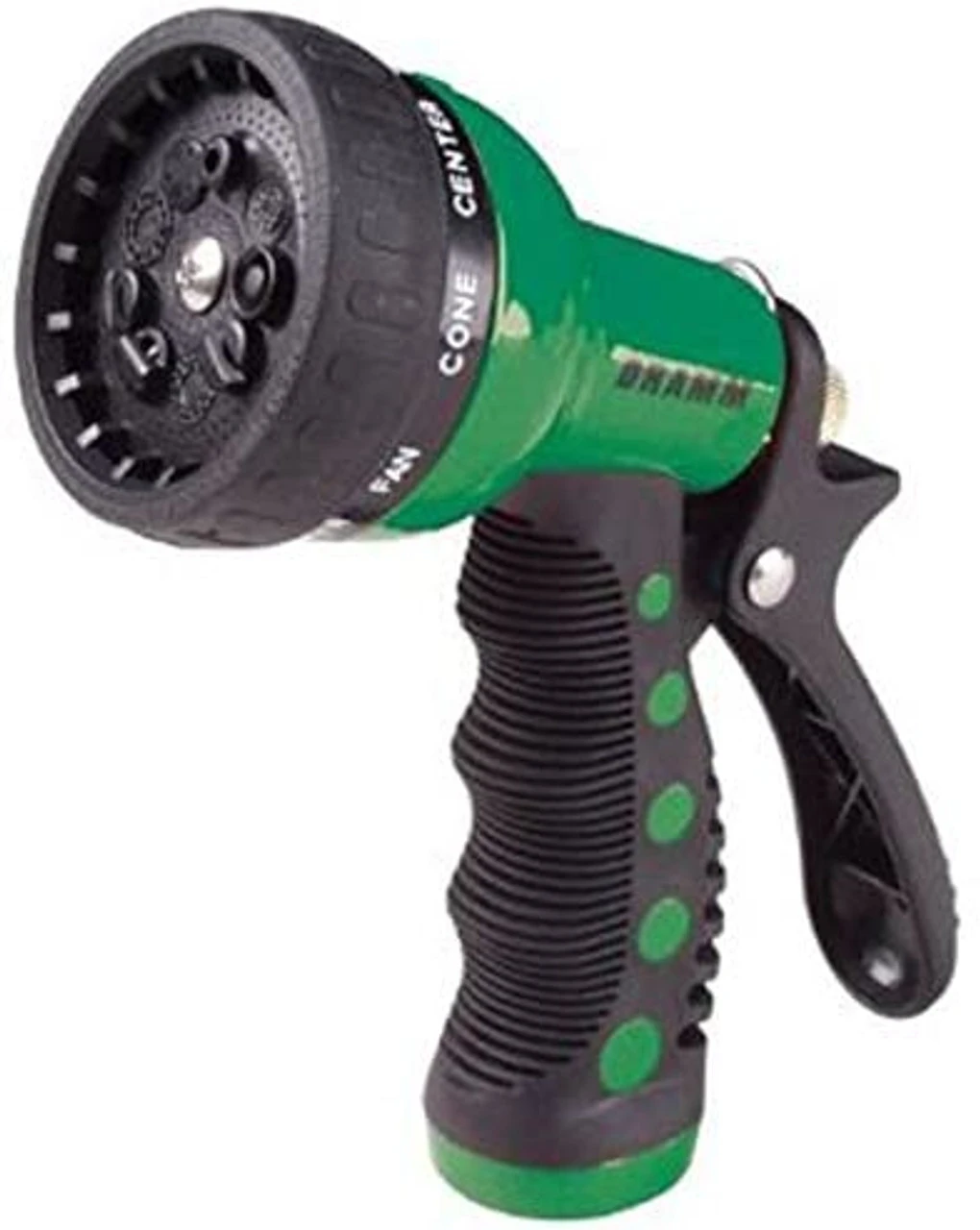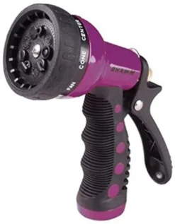 Wash your car, boat, dog or horse. Clean your deck and sidewalk. Water your flowers and young trees. The nine-pattern revolver spray gun aids in any outdoor function involving water. The nine patterns include: fan, cone, center, jet, mist, soaker, flat, angle, and shower. The lightweight revolver has an ergonomic insulated grip. The revolver is constructed with heavy-duty metal. Comes with a lifetime guarantee to the consumer and is available in six bright colors that won’t get lost in your lawn. Makes a great gift! Any of the Revolver Spray Guns can be color coordinated with Dramm’s ColorStorm Premium Rubber Hose.