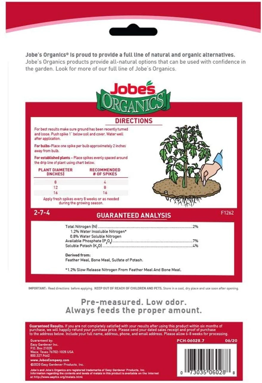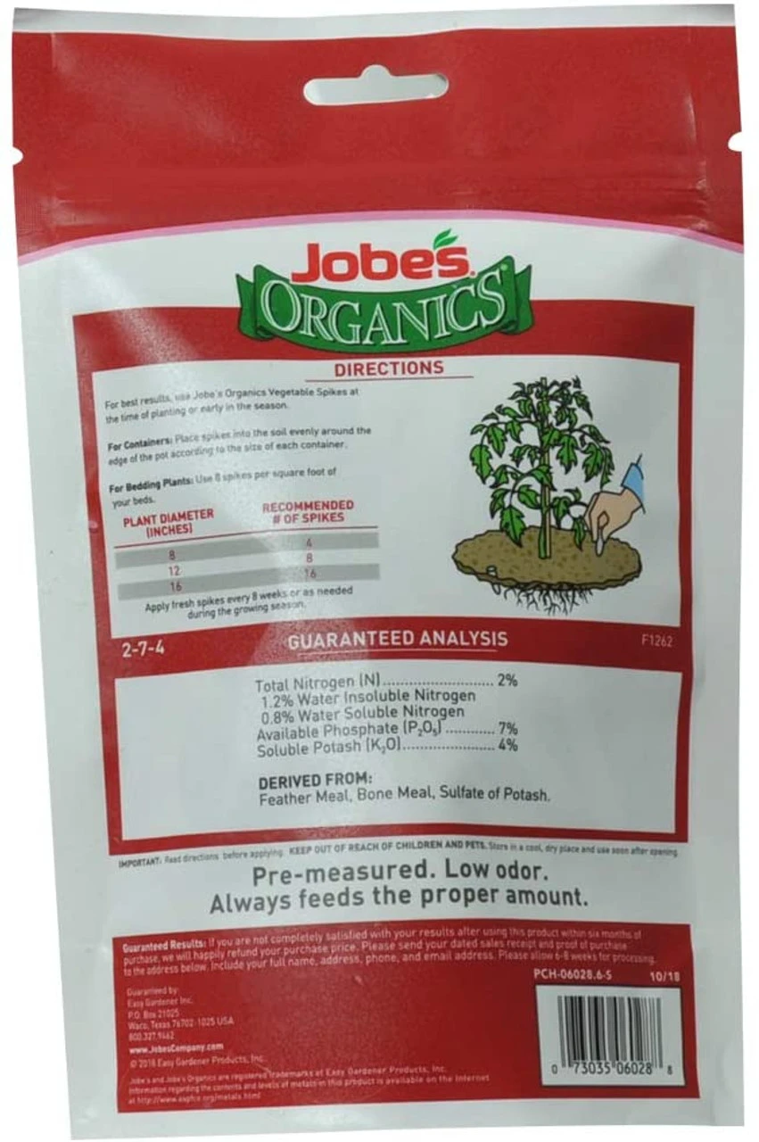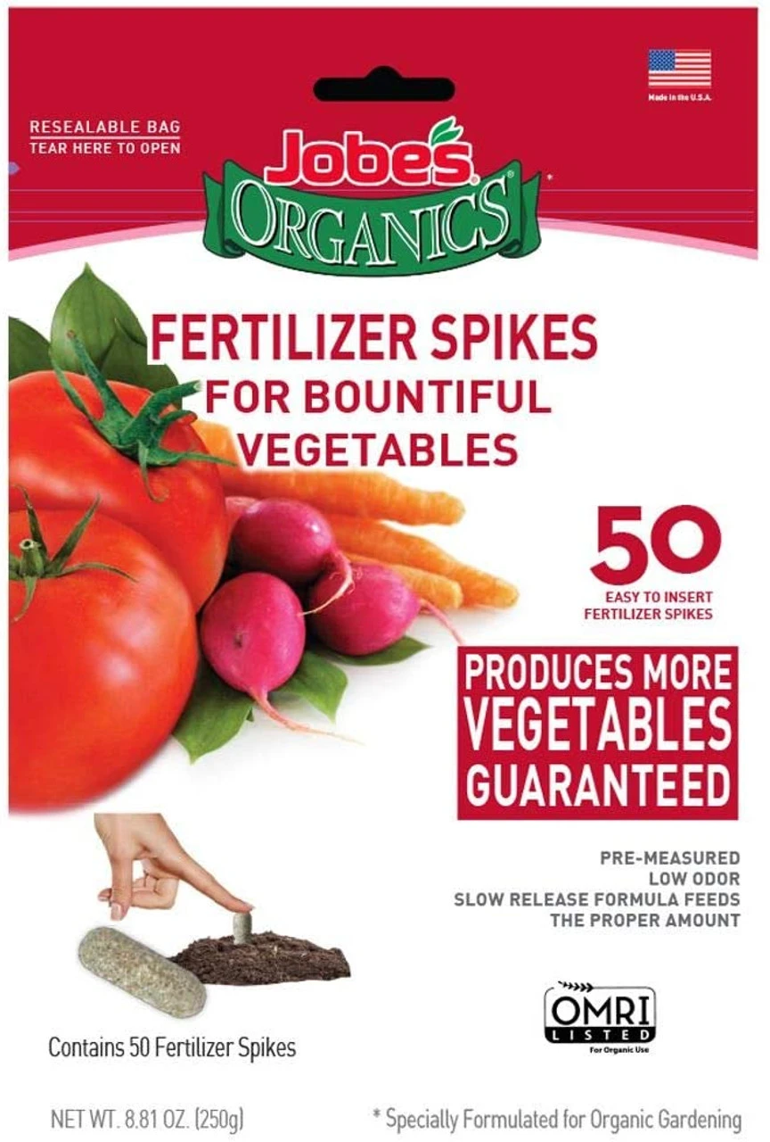 These fertilizer spikes are specially designed to feed all varieties of vegetables, at the root where they need it the most. Jobe’s Organics works to prevent depletion of nutrients, increasing the uptake of nutrients and reducing the risk of disease, insects and drought. These are pre-measured and will provide the correct dosage and you wont overfeed or burn them. Using Job’s slow release fertilizer spikes prevents waste and chemical run off.