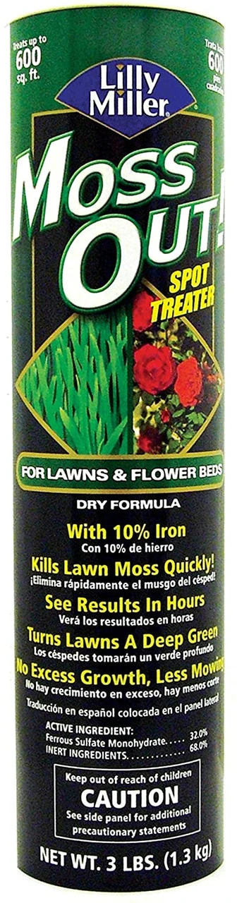 - Kills moss in lawns and flower beds quickly so you will see results in just hours. Product contains 10% iron which turns lawns a deep green without excess growth for less mowing. Covers up to 600 square feet. Use this product on lawns and flower beds only.