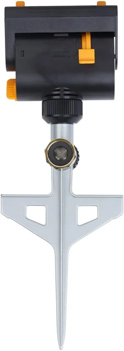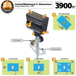 - Integrated flow control dial allows micro adjustment of the water to optimize your watering pattern; plus the ability to rotate the sprinkler 360 degrees