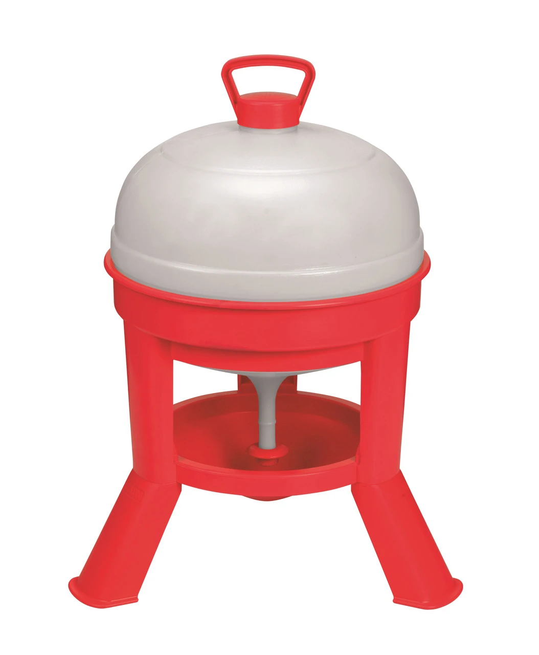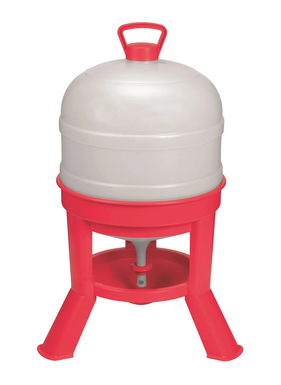 Best suited for adult birds. Made of strong, heavy-duty plastic. Top-fill design is easy to use. Valve in base controls water flow close when filling, then open to allow water to fill the base. For best results, set waterer on flat ground before filling. Accommodates between 80-100 chickens, also good for ducks or other poultry. Holds up to 8 gallons of water.