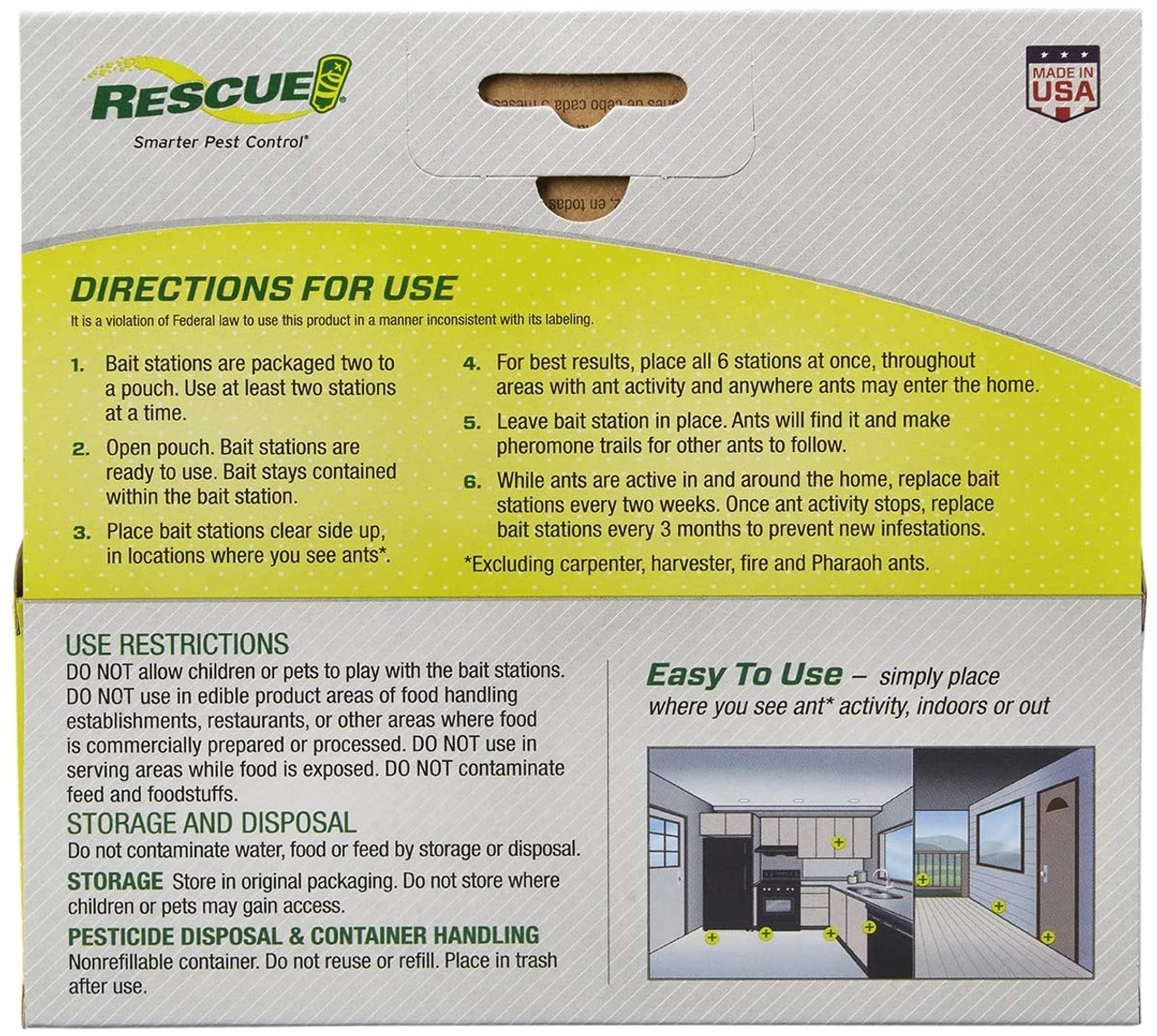 RESCUE! Ant Baits – Ant Killer, Indoor Use, Ant Trap Alternative – 6 Bait Stations