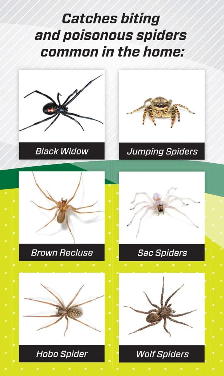 - SPIDER CONTROL – The RESCUE! Spider Trap catches a variety of biting and poisonous spiders common in the home, including: black widow spiders, hobo spiders, brown recluse spiders & more.