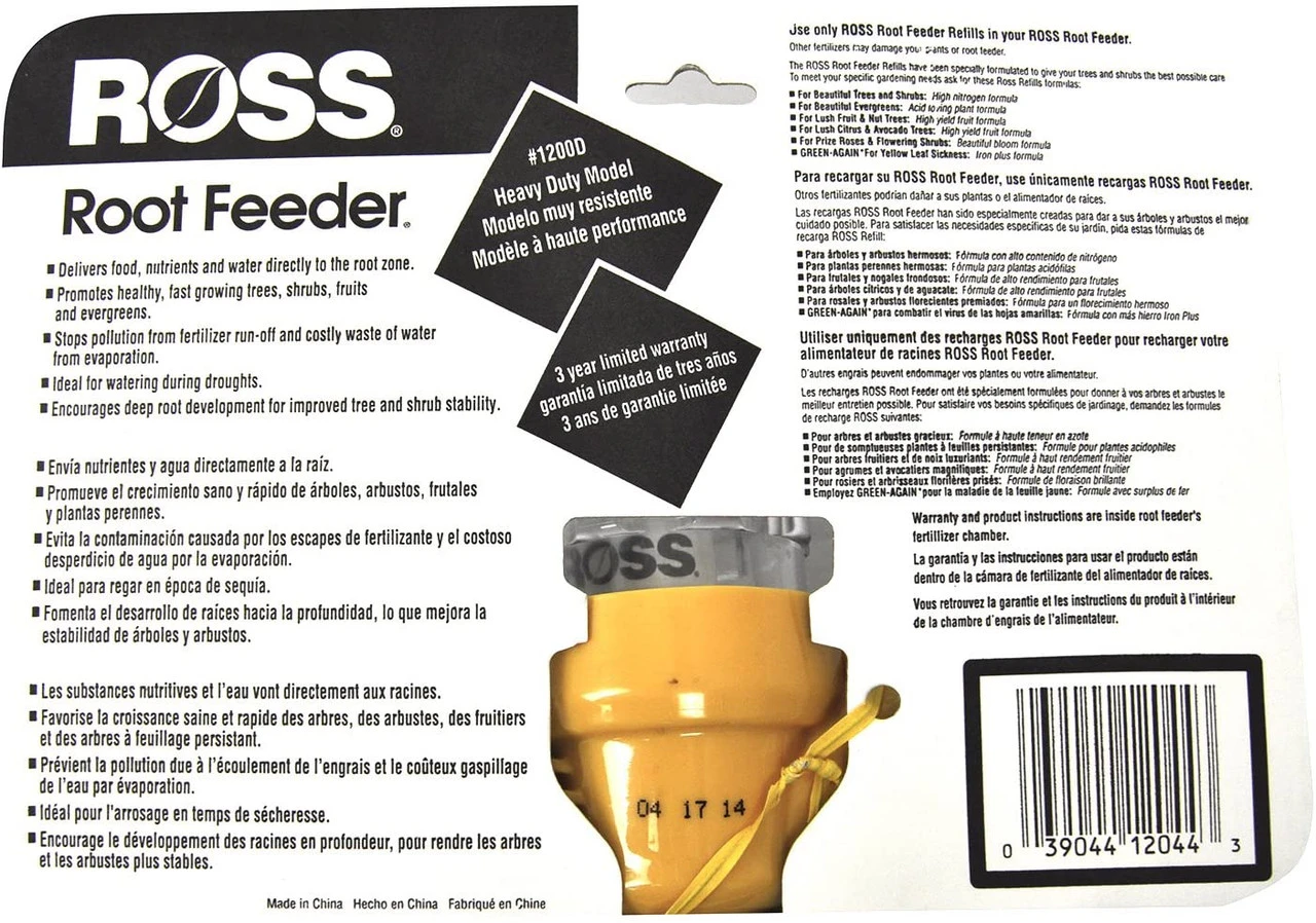 - Deep feeding fertilizer system supplies nutrients at the root level, where the active roots are growing; Use With Ross Root Feeder Fertilizer Cartridges (not included)