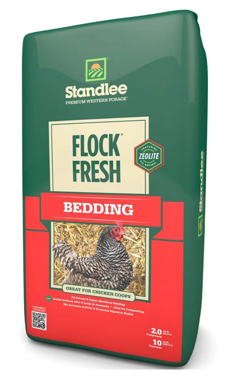 Flock Fresh is made with Premium Chopped Straw, Premium Chopped Alfalfa and Zeolite granules. The mix is composed primarily of Chopped Straw and enhanced with Zeolite granules. Alfalfa is added to encourage your flock to peck through and continually turn the bedding. This activity and comfort promotes a happy and healthy coop environment. Flock Fresh is recommended for chickens, ducks, game birds, pigs & other small animals.