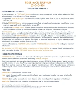 Tiger 90CR® Sulphur is the industry leading control release Sulphur bentonite fertilizer. TIGER 90CR® Sulphur fertilizer (0-0-0-90) is designed to quickly disperse and convert to sulphate throughout the growing season. No other sulphur fertilizer in its class can outperform TIGER 90CR® Sulphur. For easy handling and high yields, choose TIGER 90CR® Sulphur